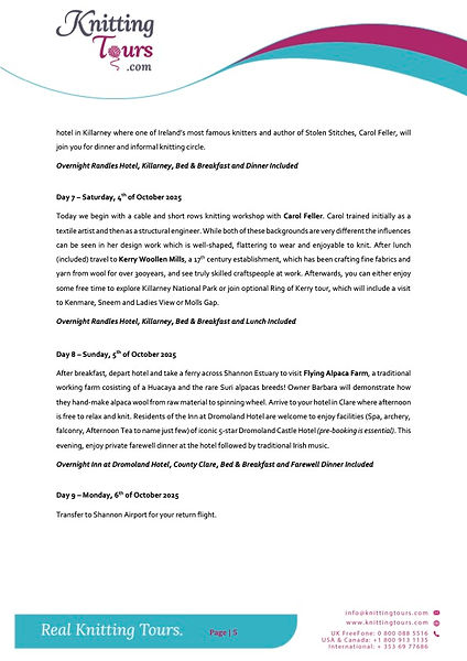 Join us from Sept 28 - October 6 2025 for a fun-filled trip including some of the top sites of Ireland, a variety of activities, and optional knitting lessons. Click on each page below for details and photos. Don't forget the map at the end of this page!